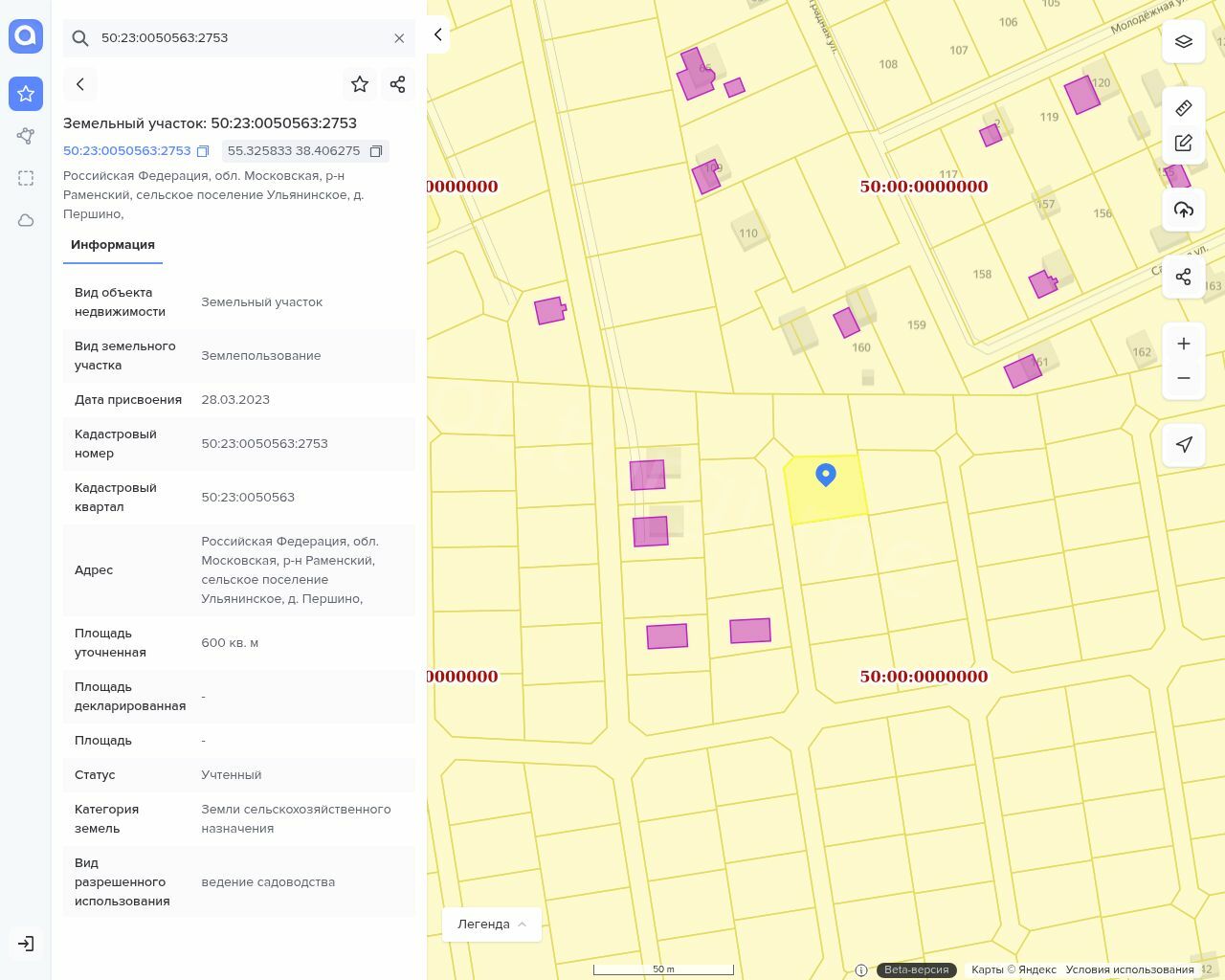 Земельный участок, общей площадью 600 кв.м., с кадастровым номером 50:23:0050563:2753.