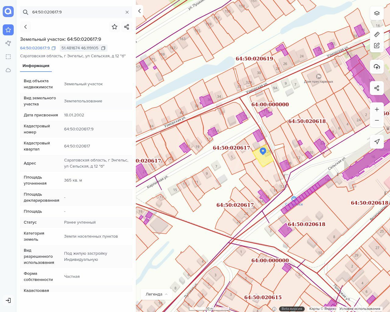 Земельный участок площадь: 365 кв.м., категория земель: земли населенных пунктов, разрешенное использование: под жилую застройку индивидуальную, с кадастровым номером 64:50:020617:9