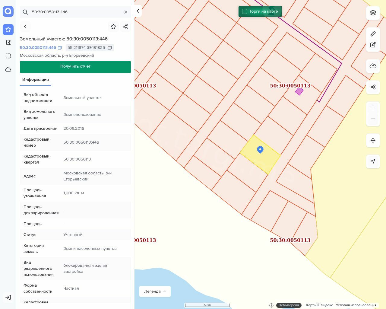 Земельный участок площадью 1000 кв.м, кадастровый номер: 50:30:0050113:446