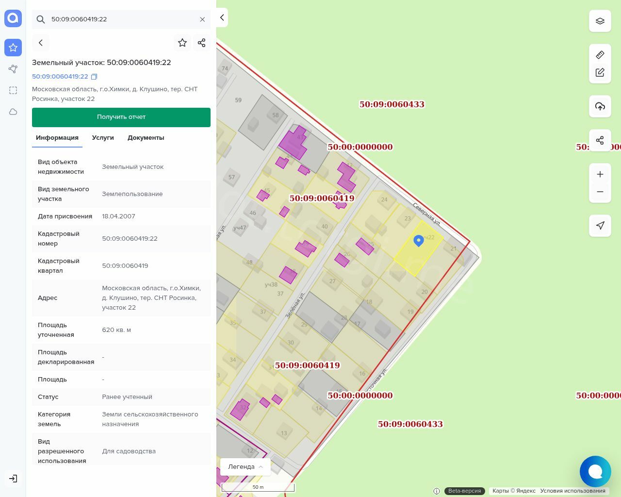 Земельный участок площадью 620 кв.м., с кадастровым номером: 50:09:0060419:22, категория земель: земли сельскохозяйственного назначения, вид разрешенного использования: для садоводства