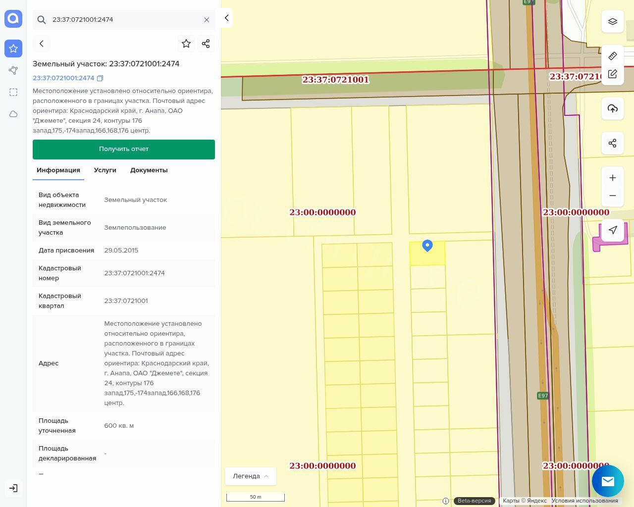 Земельный участок (кадастровый номер: 23:37:0721001:2474), площадью 600 +/-17 кв.м. Тип – земля сельскохозяйственного назначения. Категория земли - для ведения личного подсобного хозяйства.