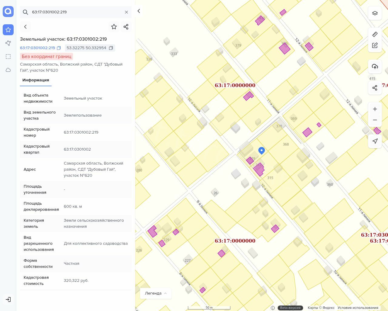 Земельный участок площадью 600 кв.м., кадастровый номер: 63:17:0301002:219