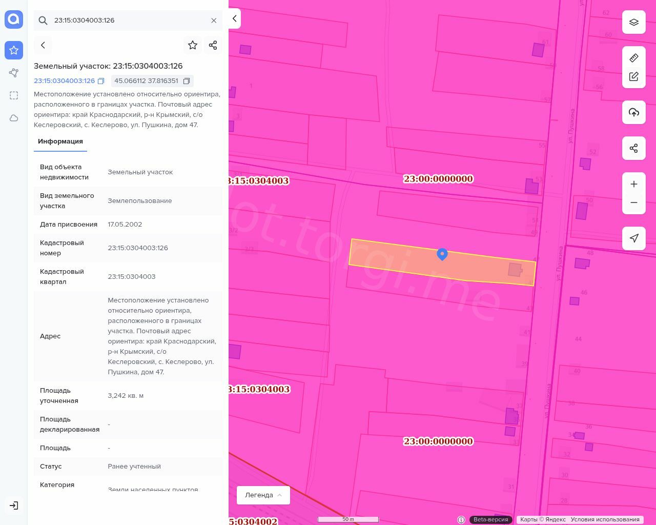 Земельный участок, площадь: 3 242 кв.м, кадастровый номер: 23:15:0304003:126.
