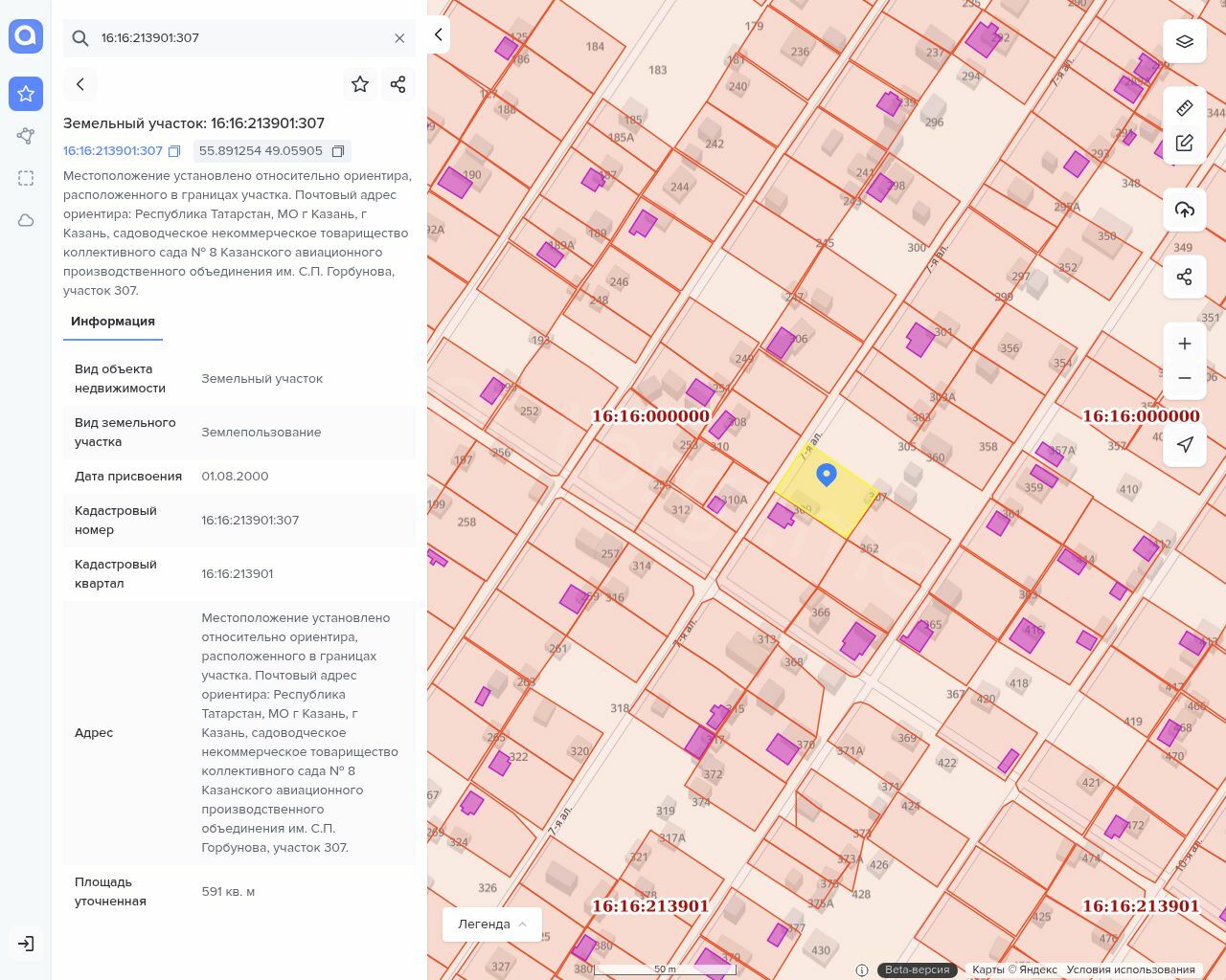 Земельный участок, площадь: 591 кв.м., категория земель: Земли населенных пунктов, разрешенное использование: Садоводство, кадастровый номер: 16:16:213901:307