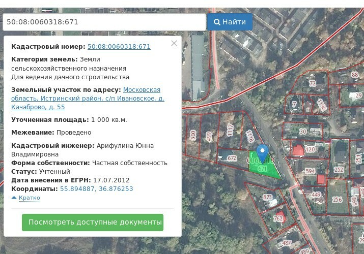 Земельный участок, земли сельскохозяйственного назначения для ведения дачного строительства, общей площадью 1 000 кв.м, кадастровый номер 50:08:0060318:671