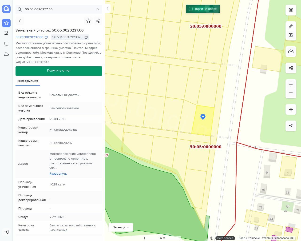 Земельный участок, площадь 1 028 м2, кадастровый номер 50:05:0020237:60
