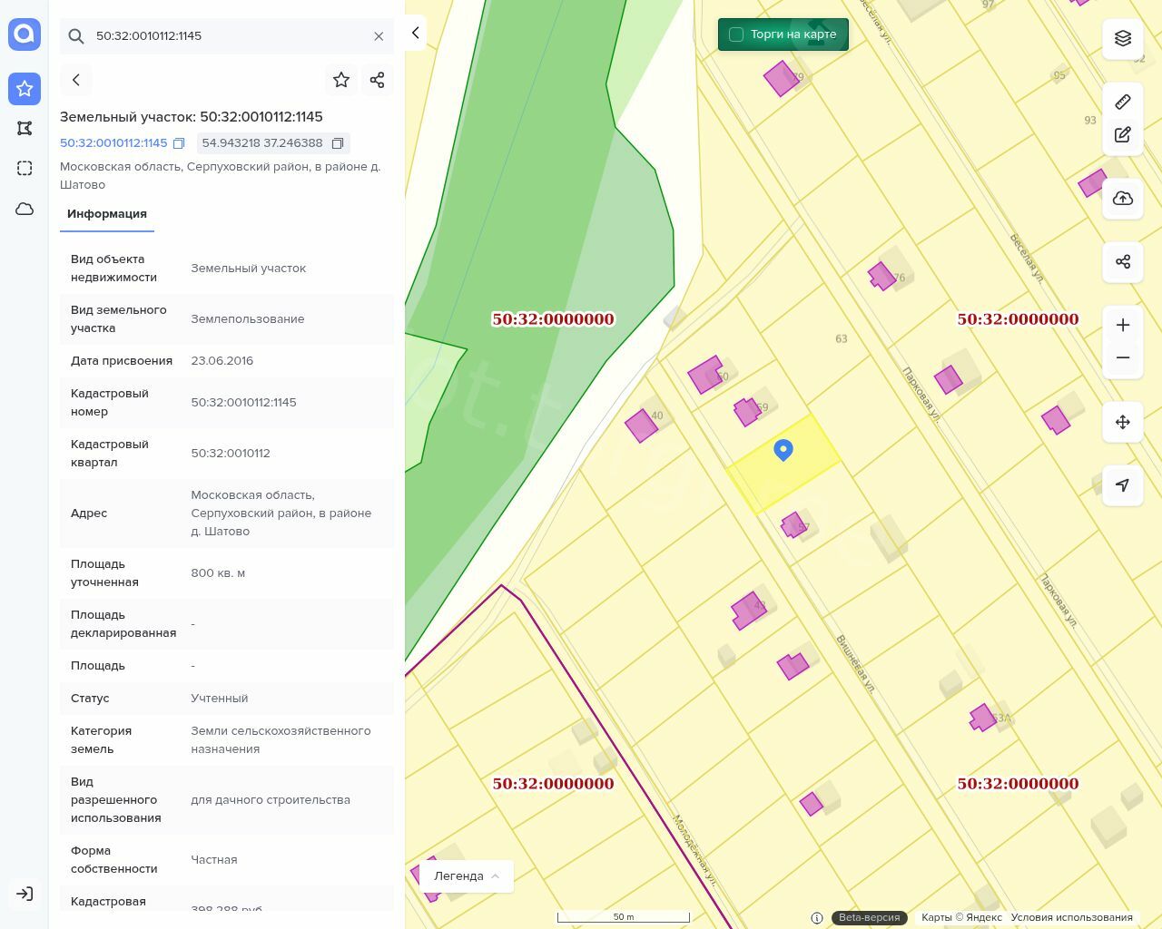 Земельный участок площадь 800 +/- 20 кв.м., назначение: земли сельскохозяйственного назначения, виды разрешенного использования: для дачного строительства, кадастровый (условный) номер: 50:32:0010112:1145