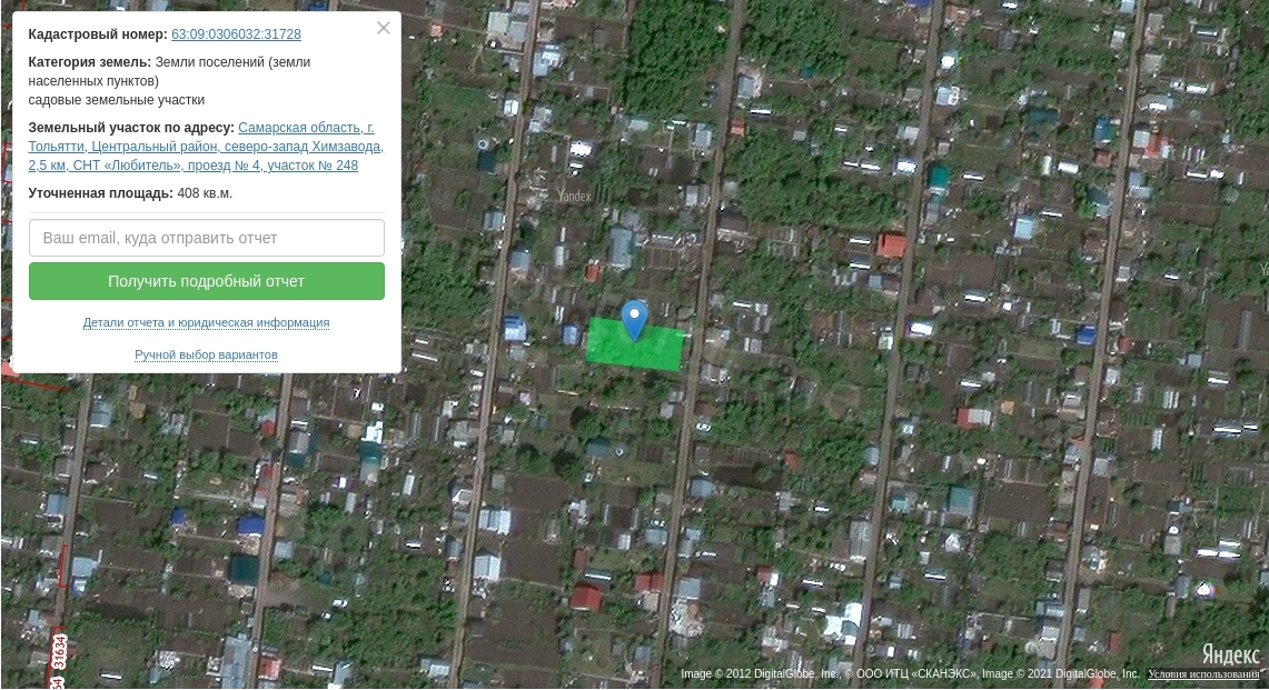 Адрес: Россия, Самарская область, г.Тольятти, Центральный район, северо-запад Химзавода, 2,5 км, СНТ «Любитель», проезд № 4, участок № 248.