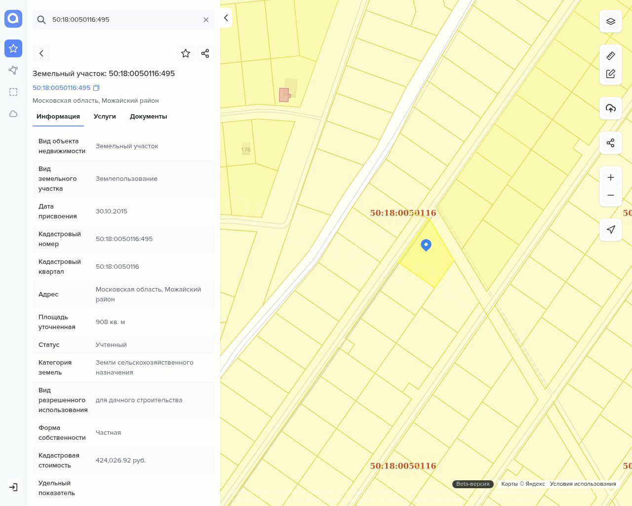 Лот № 1. Земельный участок (50:18:0050116:495) с кадастровым номером 50:18:0050116:495, площадью 908 кв.м.