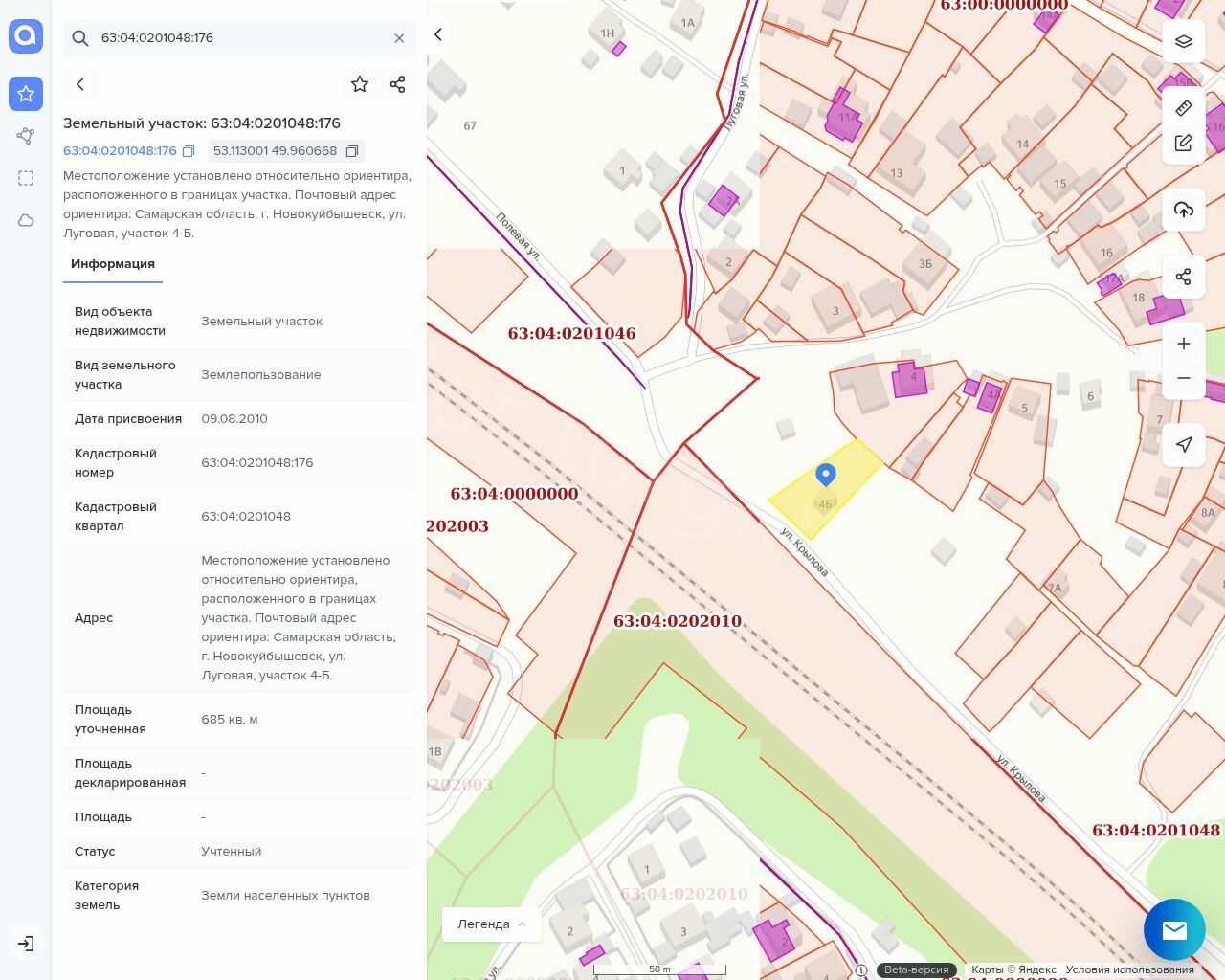Земельный участок, общей площадью 685 кв. м., с кад. номером: 63:04:0201048:176