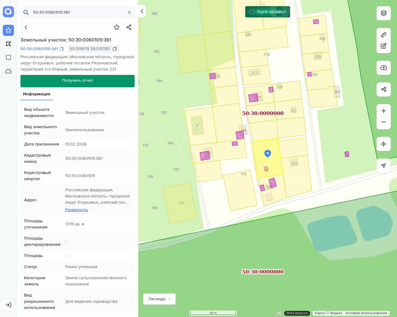 Земельный участок, площадь 1178 +/- 12 кв.м., кадастровый (условный) номер: 50:30:0060109:361