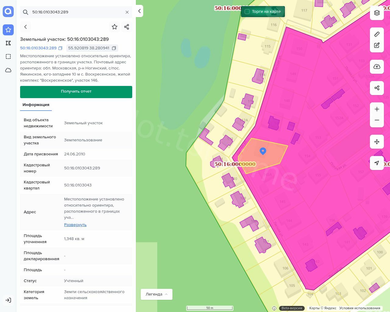 Адрес: местоположение установлено относительно ориентира, расположенного в границах участка. Почтовый адрес ориентира: обл. Московская, р-н Ногинский, с/пос. Ямкинское, юго-западнее 10 м с. Воскресенское, жилой комплекс "Воскресенское", участок 146