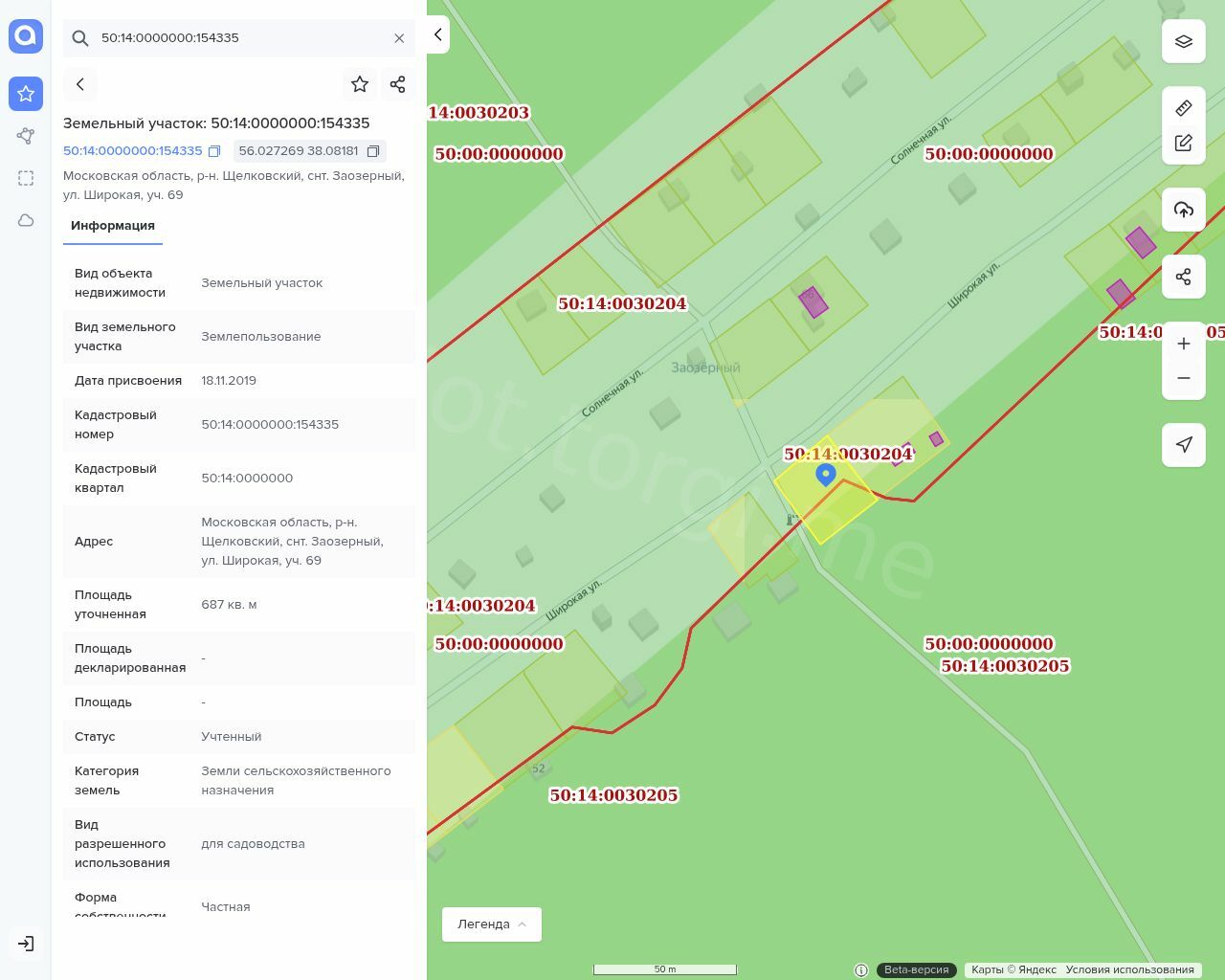 Адрес: Московская область, 687 р-н. Щелковский, снт. Заозерный, ул. Широкая, уч. 69,
