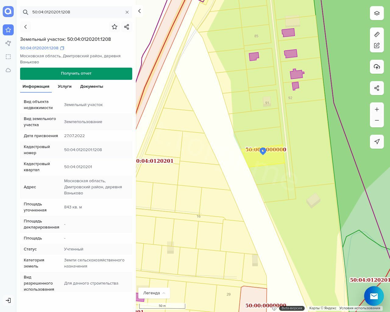 Земельный участок кадастровый номер 50:04:0120201:1208