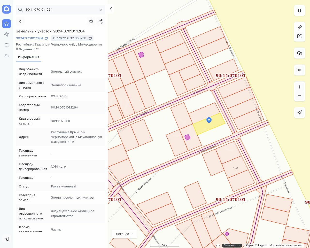 Лот №1. Земельный участок Кадастровый номер 90:14:070101:1264 площадь 1014. Виды разрешенного использования: индивидуальное жилищное строительство Категория земель: земли населенных пунктов