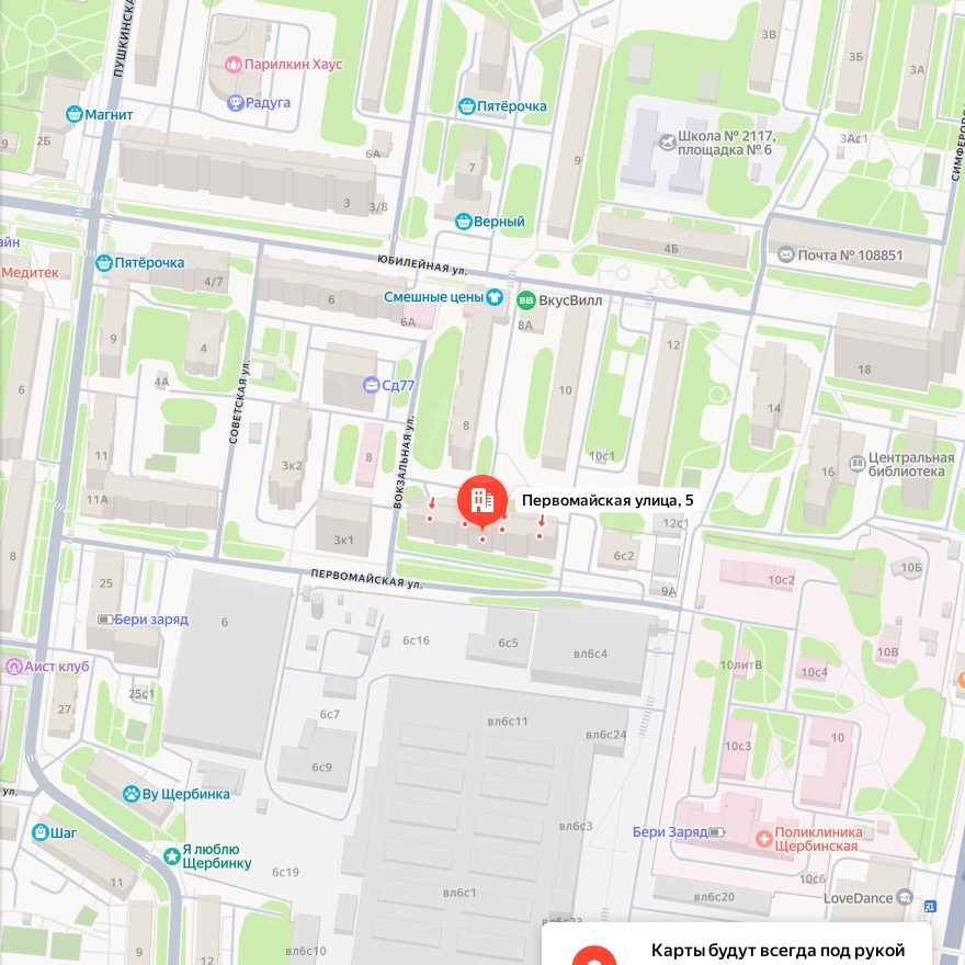 Адрес: город Москва, город Щербинка, улица Первомайская, дом 5, квартира 42