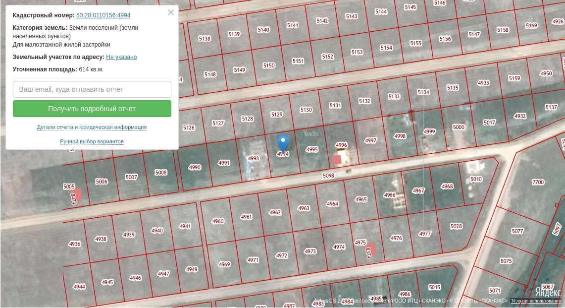 Земельный участок, площадью 614 +/- 9 кв. м, кадастровый № 50:28:0110156:4994, категория земель: земли населенных пунктов, разрешенное использование: для малоэтажной жилой застройки;