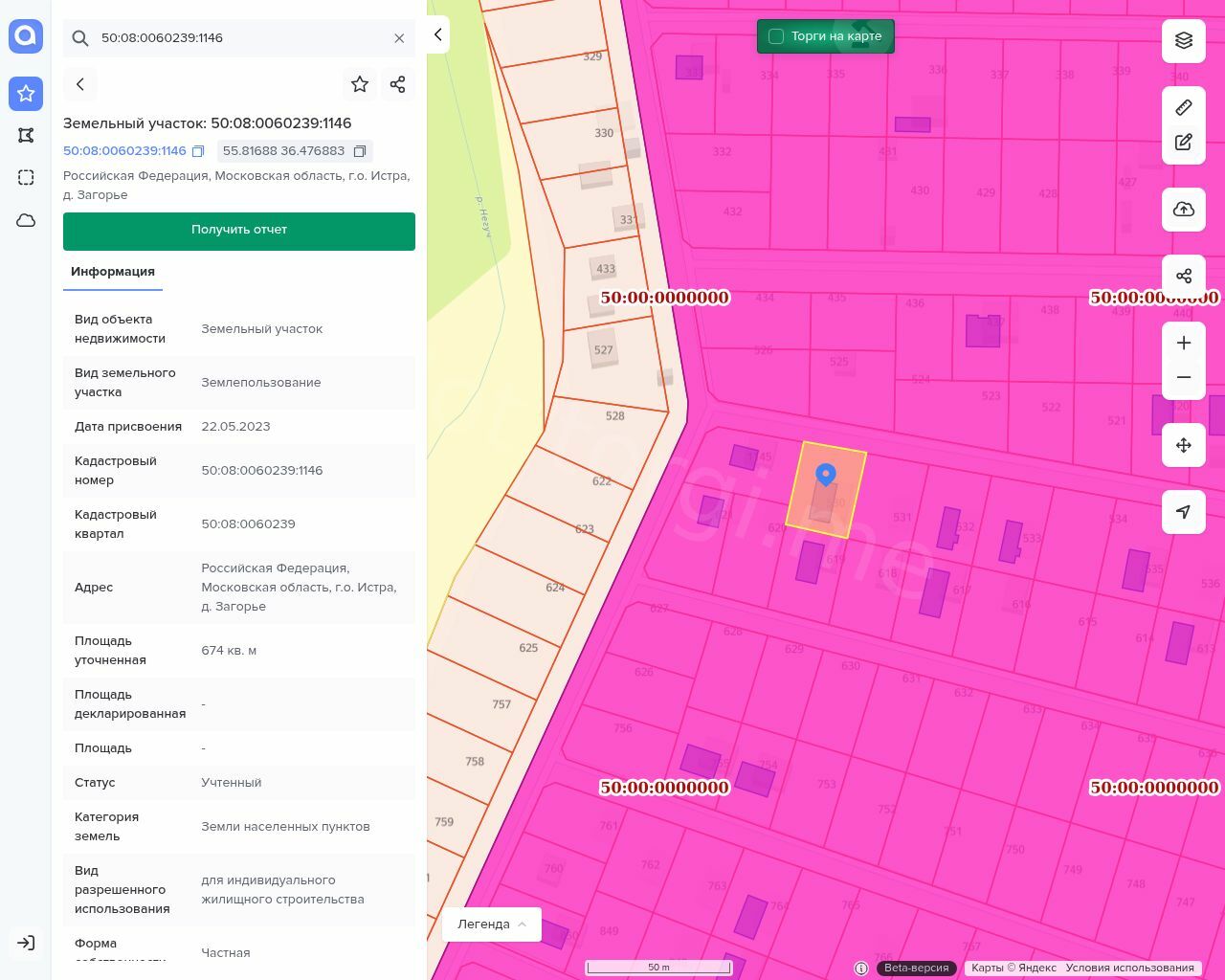 Земельный участок -площадь 674 +/- 9 кв.м. - Кадастровый номер 50:08:0060239:1146.