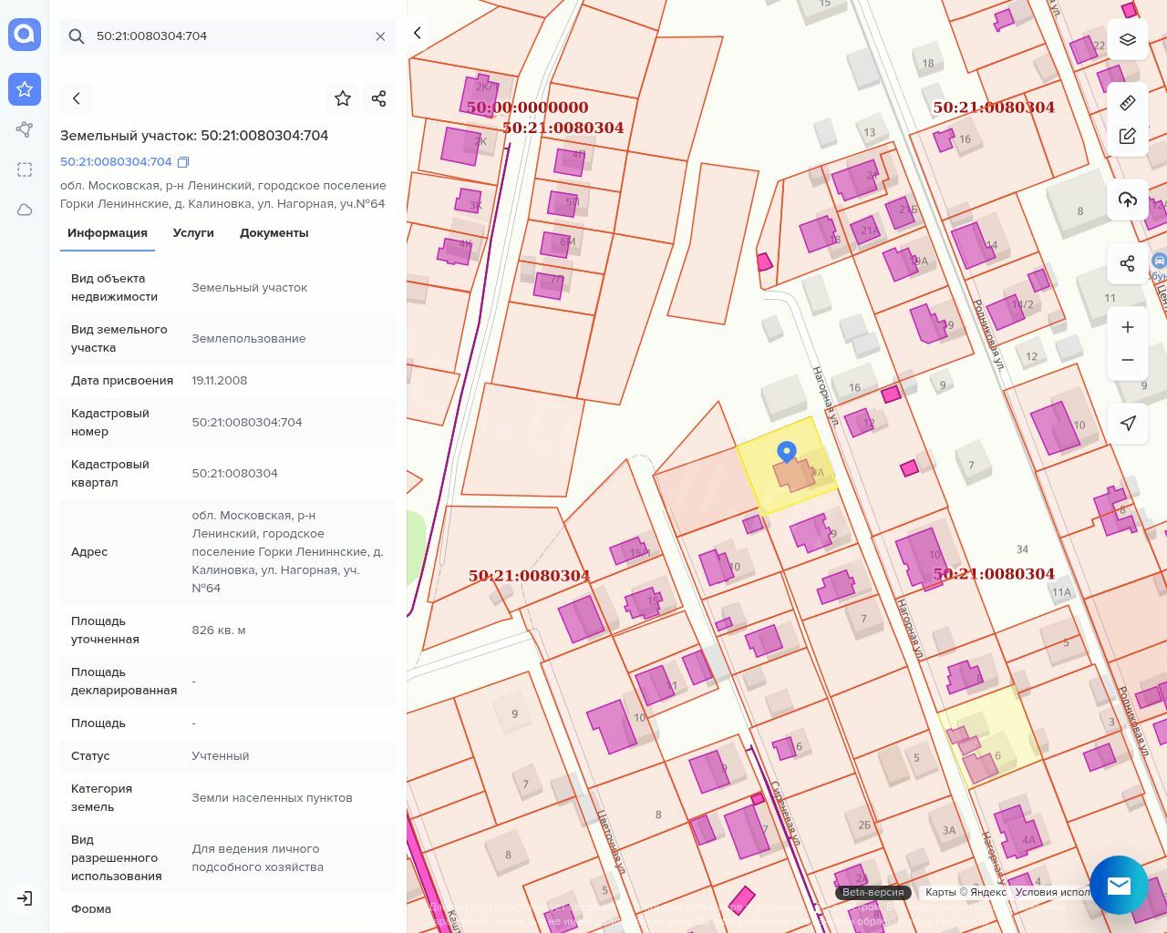 Адрес: обл. Московская, р-н Ленинский, городское поселение Горки Лениннские, д. Калиновка, ул. Нагорная, уч.№64