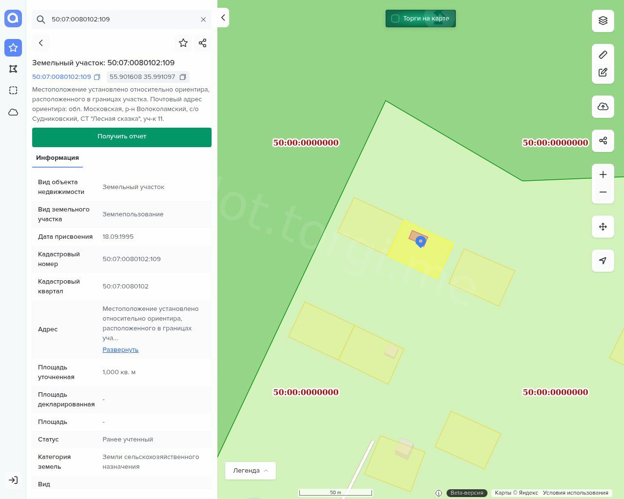 Земельный участок, площадью 1000 +/- 22 кв. м, категория земель: Земли сельскохозяйственного назначения, разрешенное использование: для садоводства, с кадастровым номером: 50:07:0080102:109