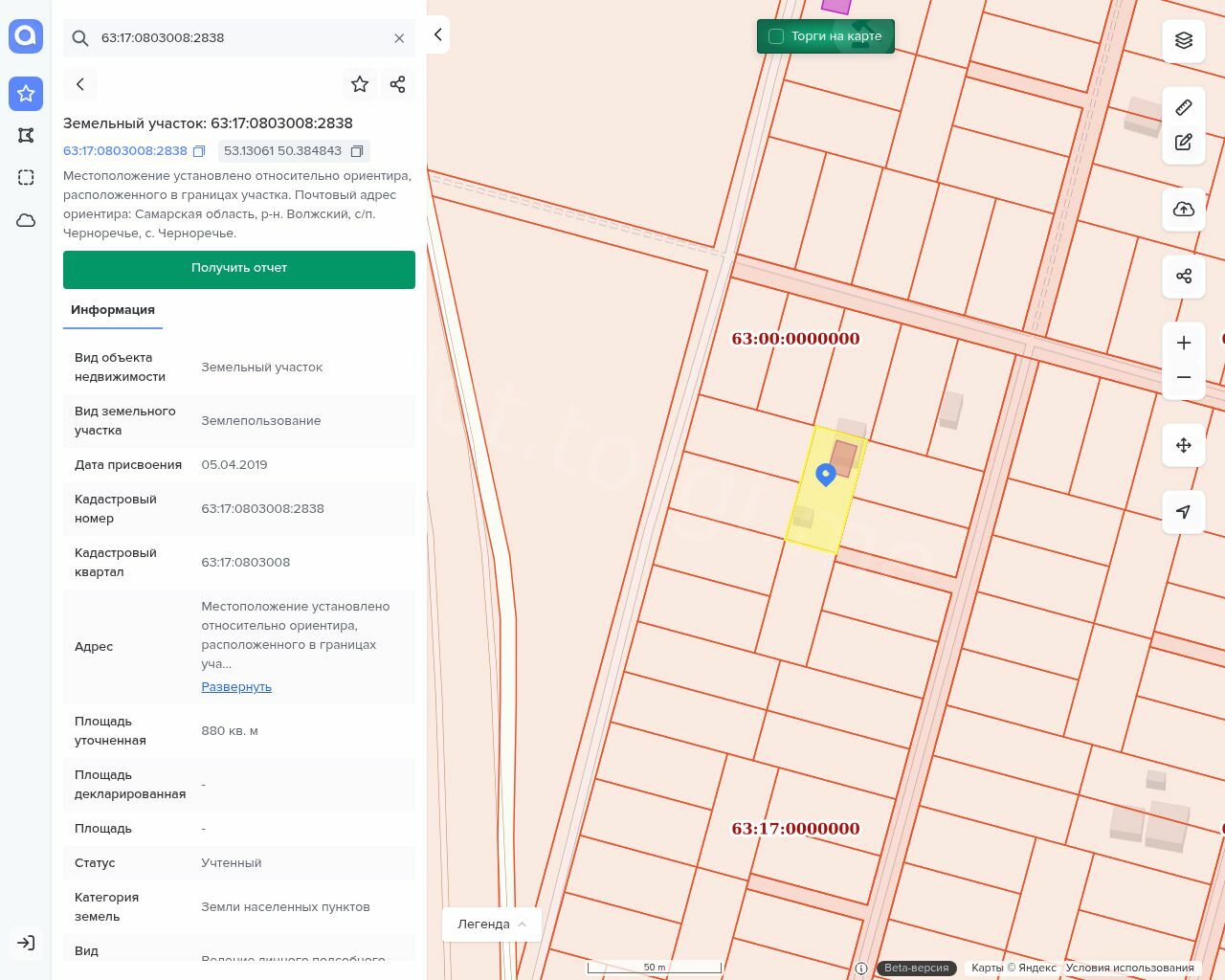 Земельный участок, площадью 880 +/- 10.38 кв.м., с кадастровым номером 63:17:0803008:2838