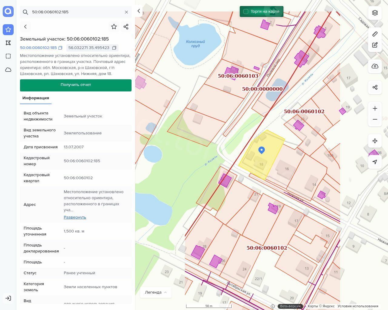 Земельный участок, площадь 1500 кв. м. с кадастровым номером 50:06:0060102:185.