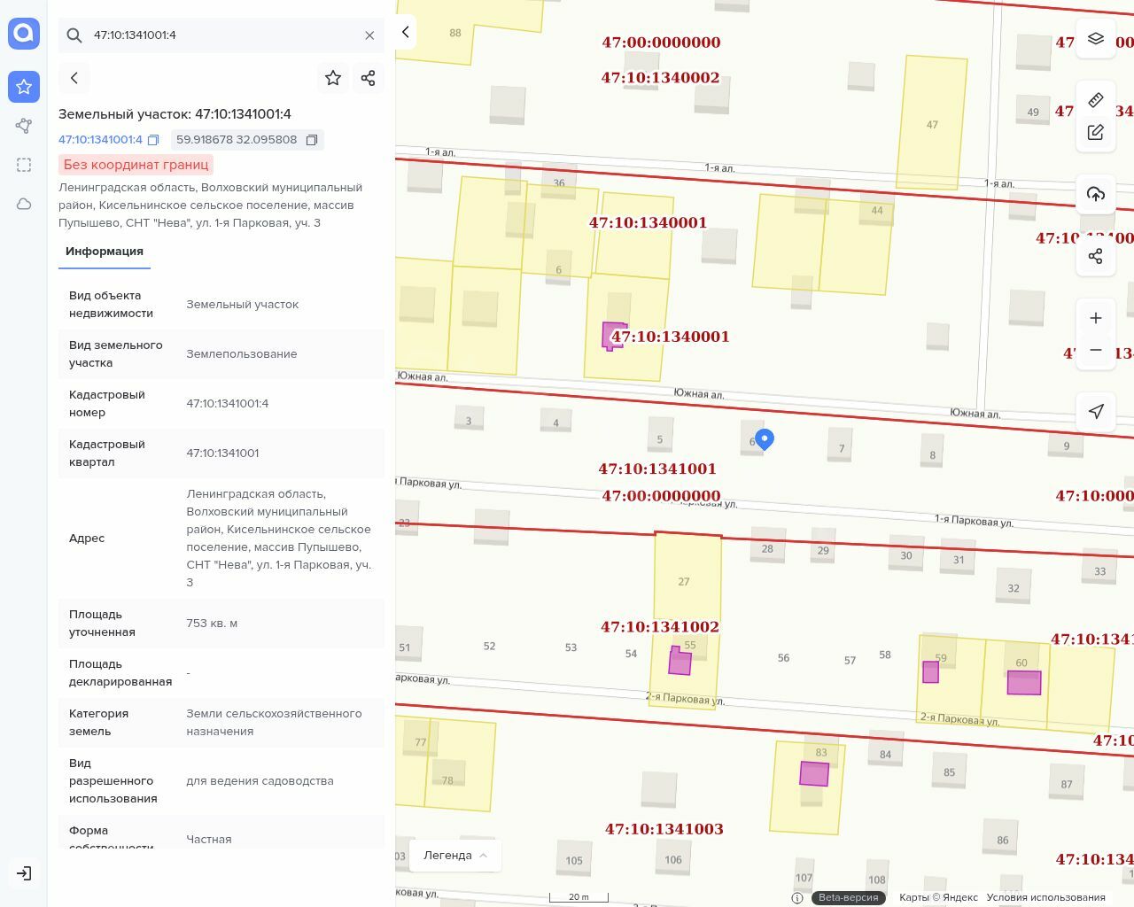 Земельный участок, для ведения садоводства, площадь: 753, к/н 47:10:1341001:4