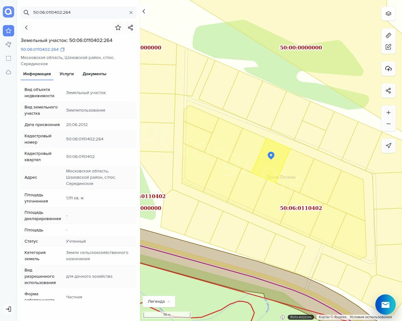 Земельный участок площадь 1 111 м², кад. № 50:06:0110402:264.