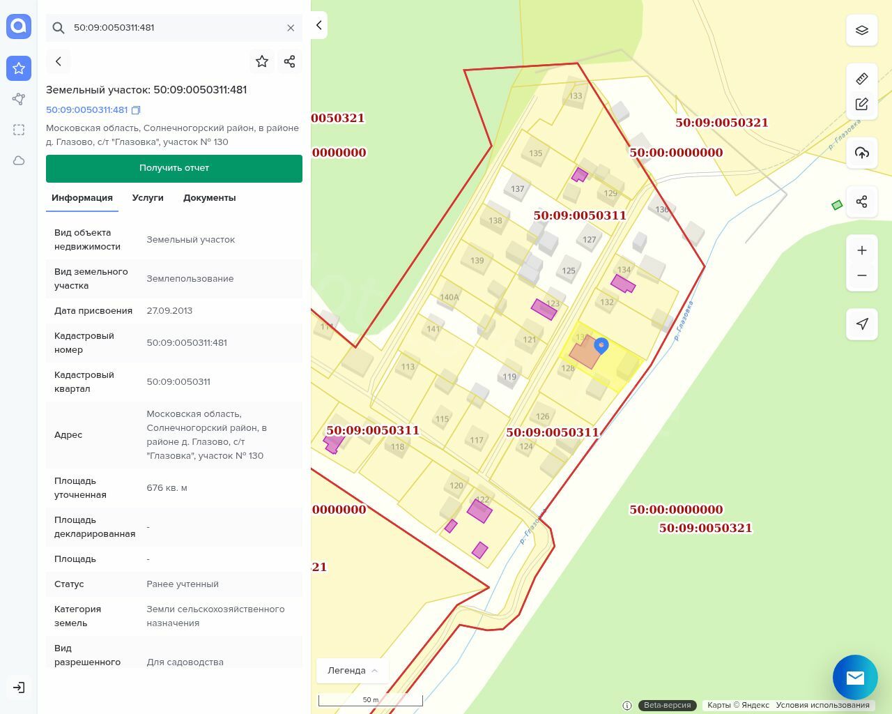 Земельный участок, площадью 676 +/- 18 кв.м, кадастровый № 50:09:0050311:481, категория земель: земли сельскохозяйственного назначения, виды разрешенного использования: для садоводства