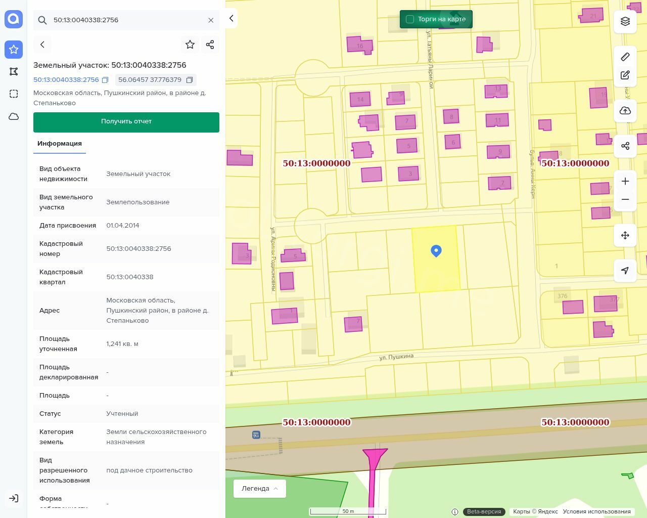 Земельный участок, категория земель: земли сельскохозяйственного назначения, виды разрешенного использования: под дачное строительство, кадастровый номер: 50:13:0040338:2756, площадь 1241+/-25 кв. м,