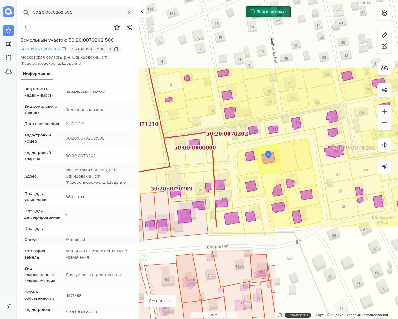 Земельный участок, площадью 660 +/- 18 кв. м, категория земель: Земли сельскохозяйственного назначения, разрешенное использование: для дачного строительства, с кадастровым номером: 50:20:0070202:506